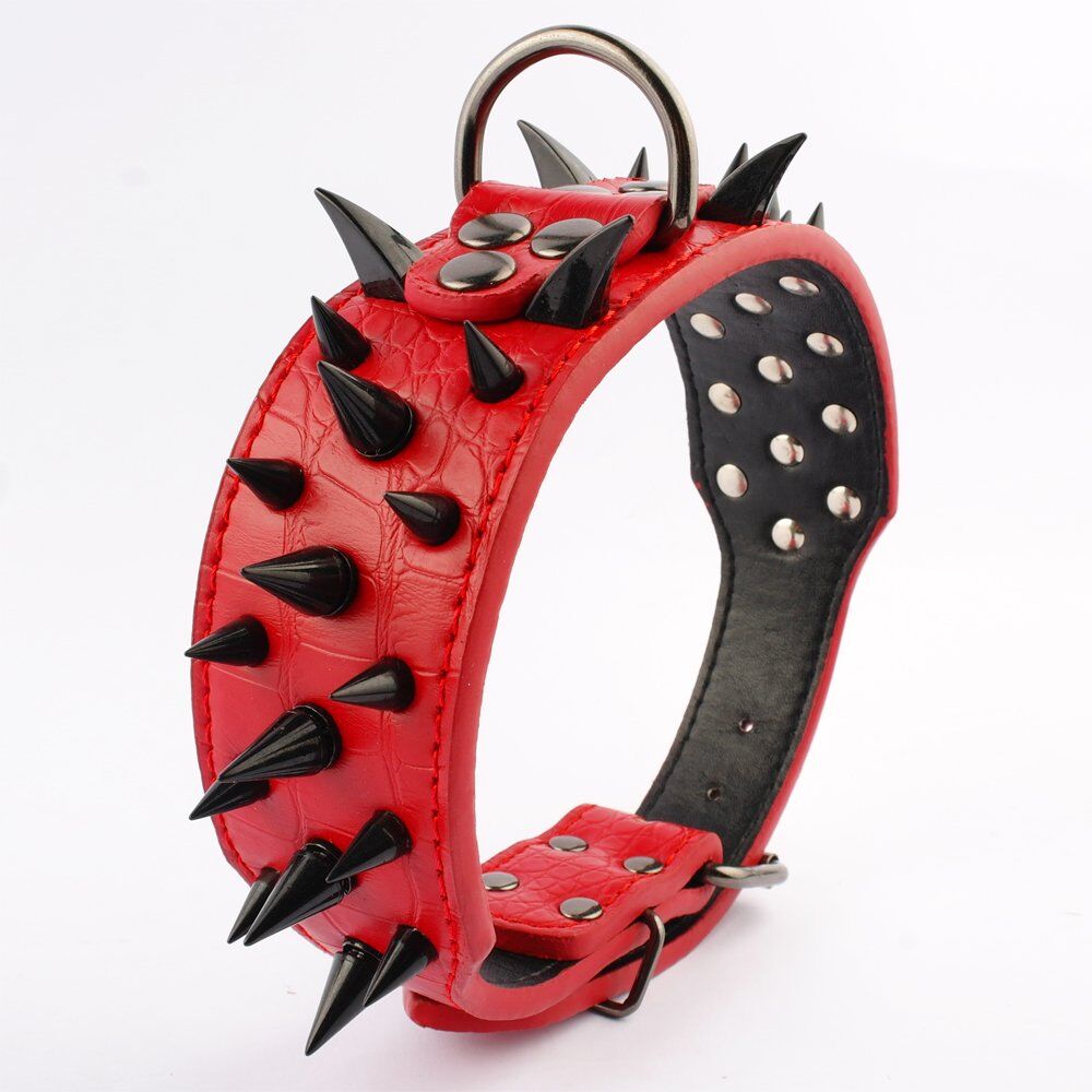 Leather studded dog collar with special style that Classical black color with brilliant Red Spiked,make your dogs stand out in the park and be proud of them