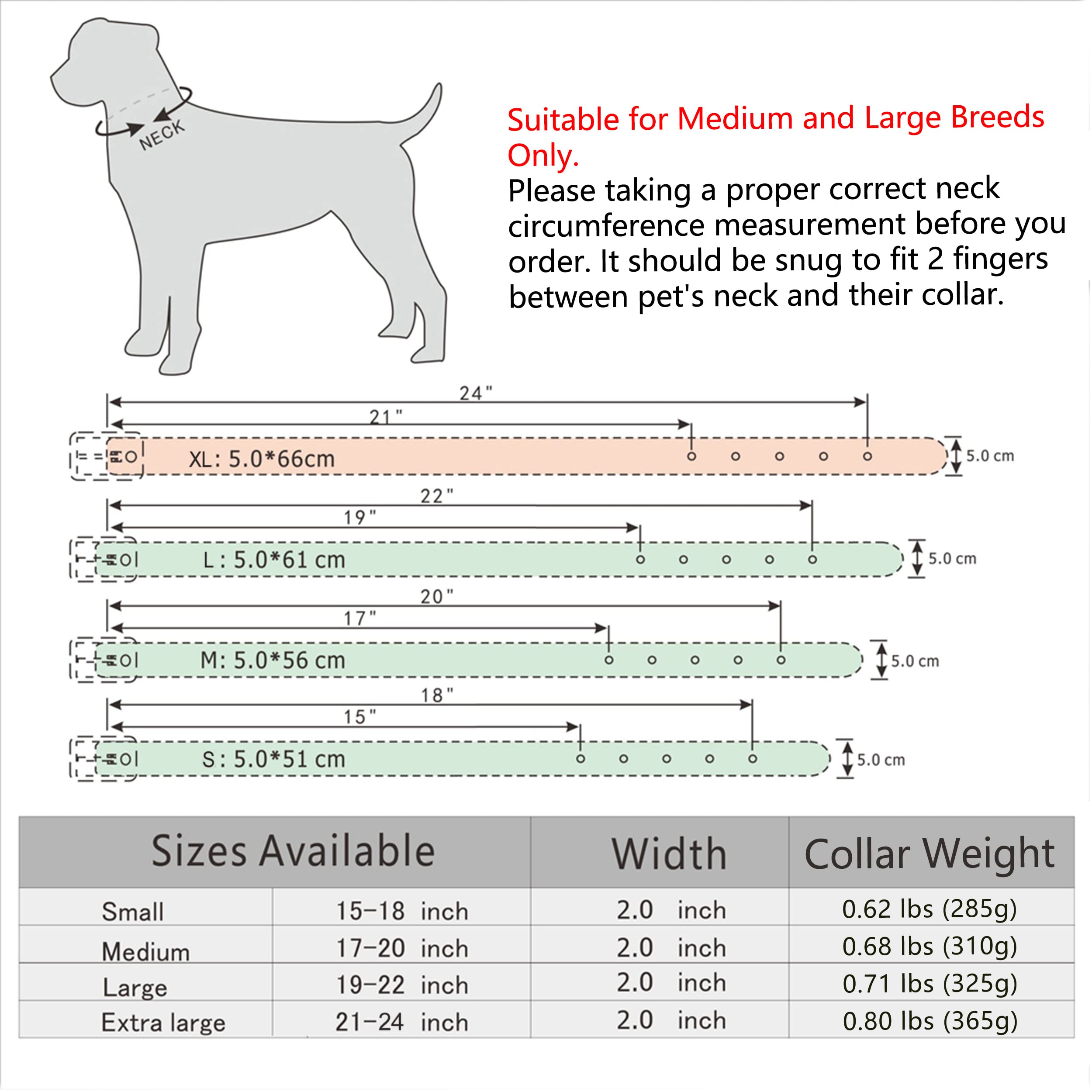 - ?Fit Medium Large Dogs Only? – Please taking a proper correct neck circumference measurement before you order. Make it as the instruction as picture says. If you’re not sure, you can contact us and we will give you timely and professional response.