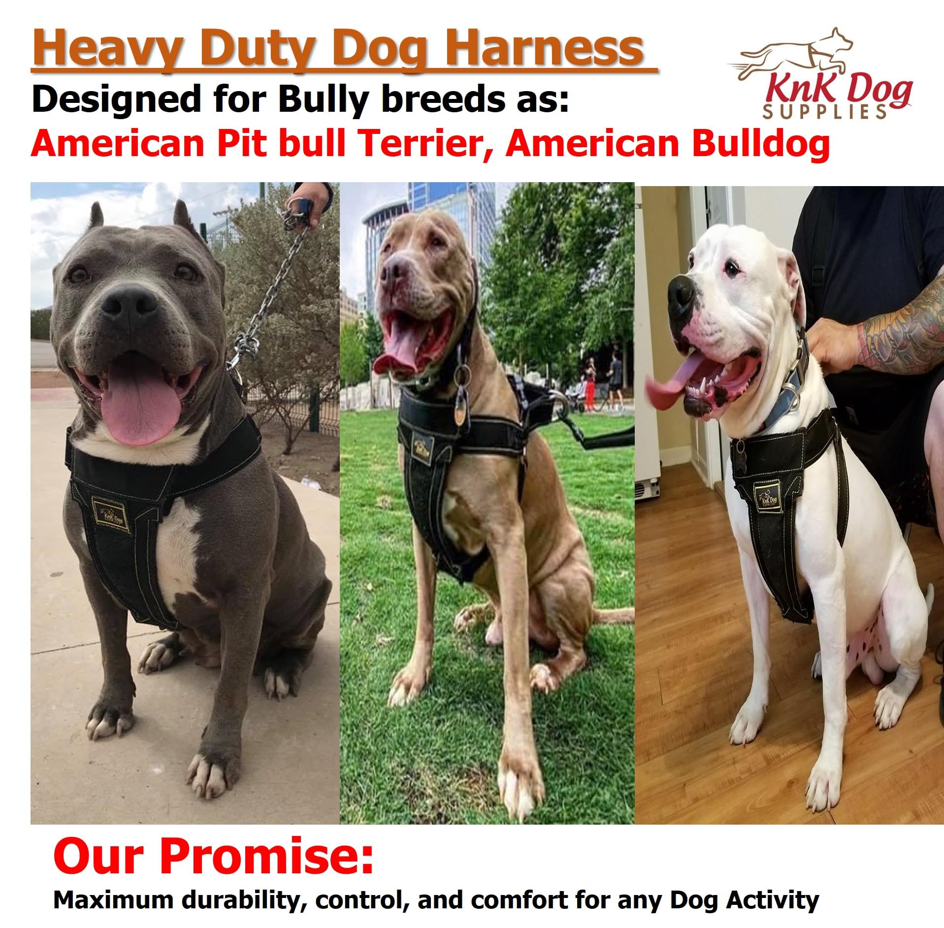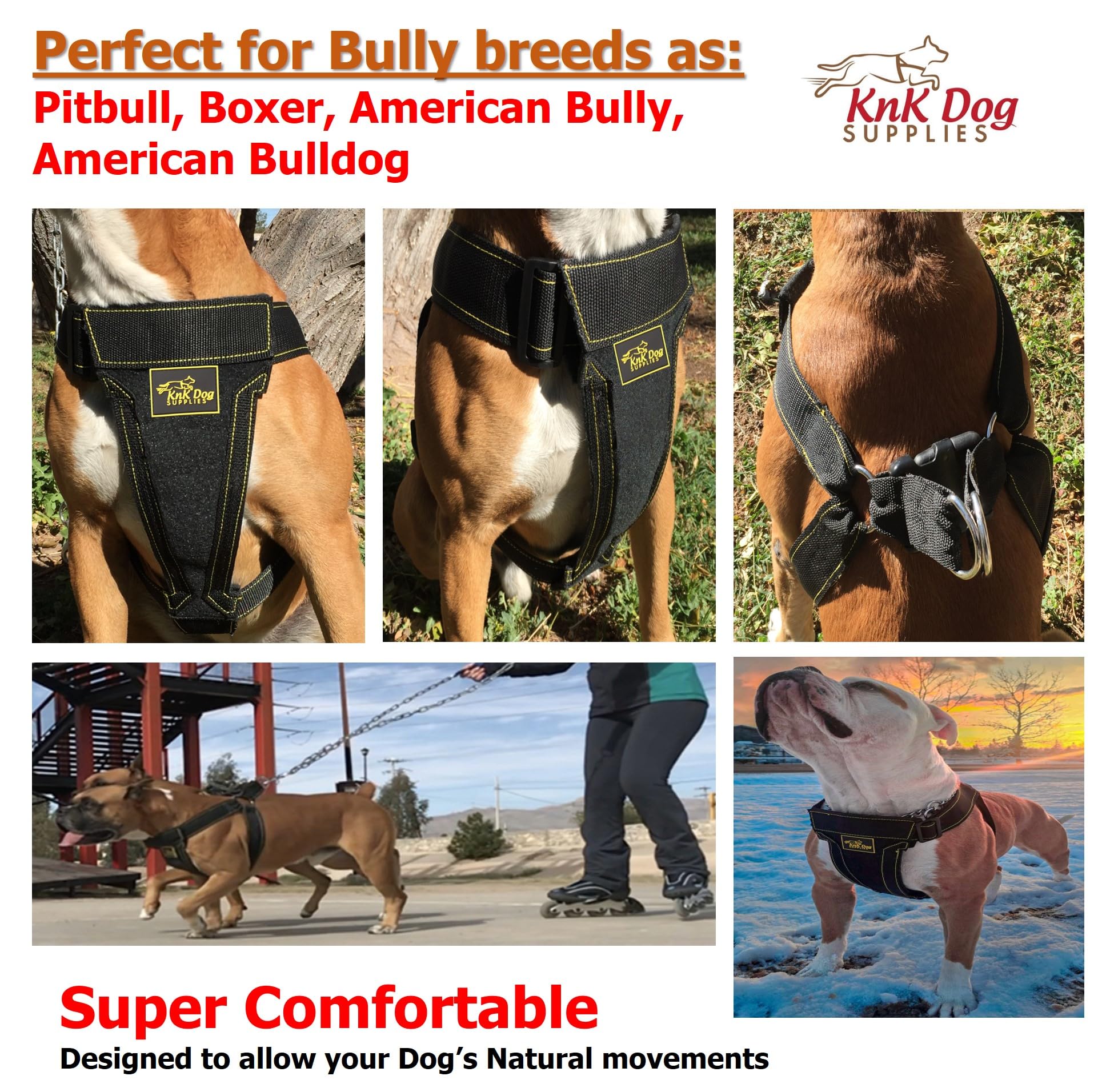 • ? Comfort: Its design and fully padded chest area distribute your dog’s weight evenly, providing maximum comfort and control. We recommend using KNK dog harnesses instead of a simple dog collar, as collars can potentially hurt your dog’s neck.