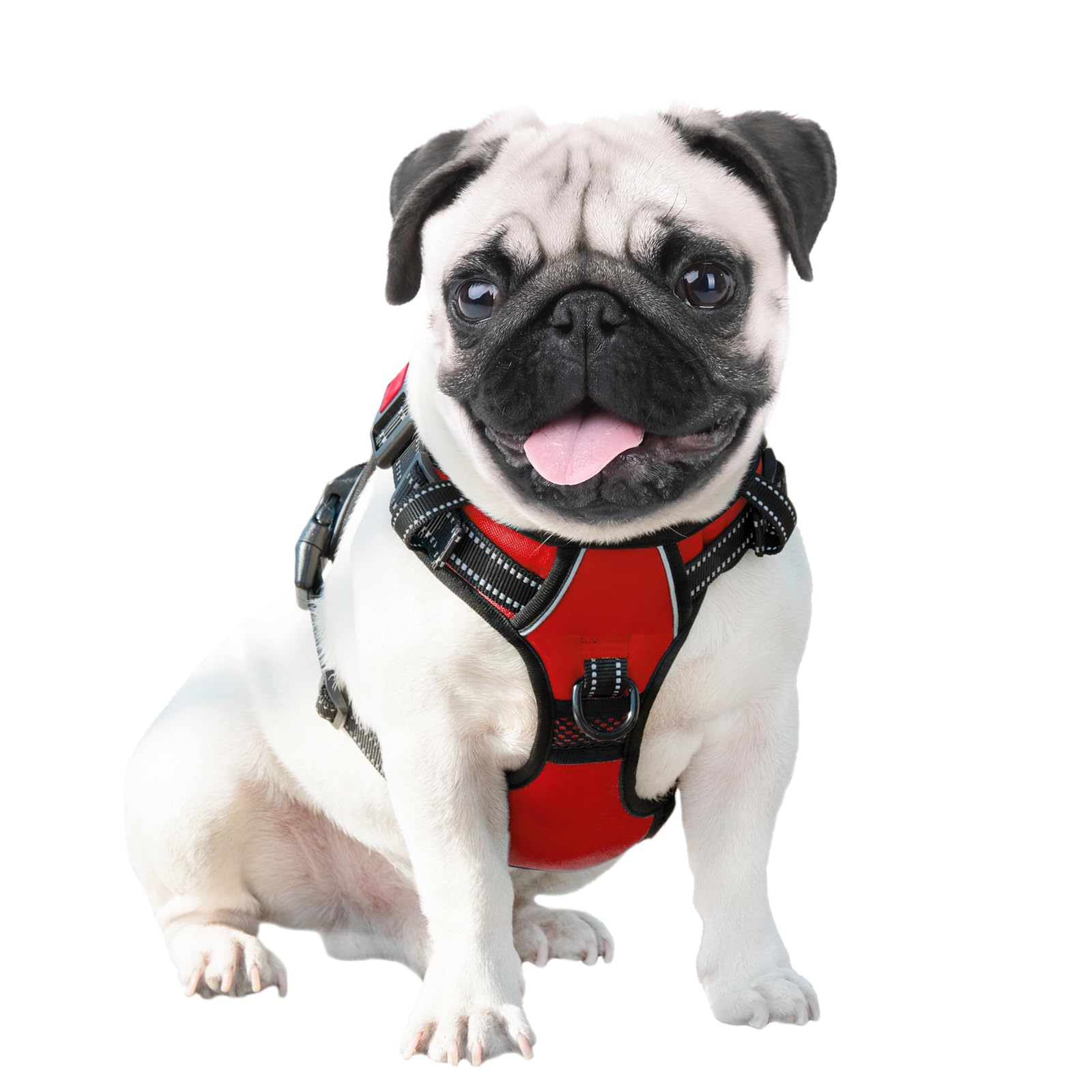 Details: [HARNESS IS ESSENTIAL!] Research shows that regular exercise, outdoor play are good way to keep your dog active, satisfied and well behaved. Then a suitable harness is essential ![MOST IMPORTANT FEATURES]1. 2 Leash Attachment hooks Our these two hooks are available for almost all leash hooks. They are big enough. If you use the front hook on the chest, it will reduce the pulling a lot and make going for a walk more enjoyable. As usual, most people like to use the back hook.2. 1 Soft Training Handle You will like this handle on the back,it is helpful in controlling dogs a bit closer to you when they are trying to lunge at something. Also, it is convenient to assist dogs into the car.3. Reflective The reflective material will be really nice when it gets dark. Also, your dog will be saw easily. This reflective material can make drivers have long time to react, which ensure your dog?s safety!4. 4 Adjustable Clips These four black clips are adjustable, two are on the neck and other two are on the chest. You can adjust it to the best size.[HOW TO CHOOSE THE CORRECT SIZE? ] Step 1. Measure dog?s Neck Girth ; Step 2. Measure dog?s Chest Girth ; Step 3. You should be able to fit two fingers under the straps. If between sizes, please choose the larger size. XS Neck : 10-12.5″ ; Chest : 11-20″; S Neck: 12-18? ; Chest: 14-24?; M Neck: 14-20? ; Chest: 16-28?; L Neck: 16-24?; Chest: 22-33?; XL Neck: 22-33?; Chest: 28-39?;THE BACK LENGTH (THE TOP STRAP THAT CONTACTS THE NECK TO THE CHEST STRAP) : XS : 4.13 inch S : 4.33 inch M: 5.51 inch L : 5.90 inch XL: 6.89 inchClick the Add to Cart Button Now!