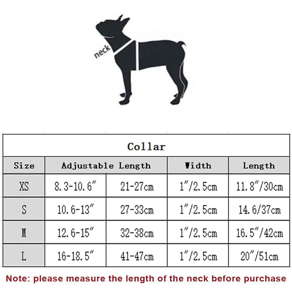 - ??Adjustable safety buckle?these cute dog collars are designed with adjustable metal safety buckles, you can adjust them to fit your pet’s neck, will not loose easily, and they are easy to put on and take off, provide your pet with a comfortable wearing experience.